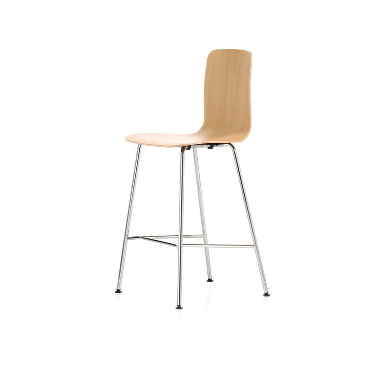 HAL Ply Stool Medium 由 Jasper Morrison 设计,是一款中等高度的吧凳,带有优雅的胶合板座椅外壳和稳定的四腿底座。还提供其他具有更高底座和塑料座椅壳的酒吧凳。