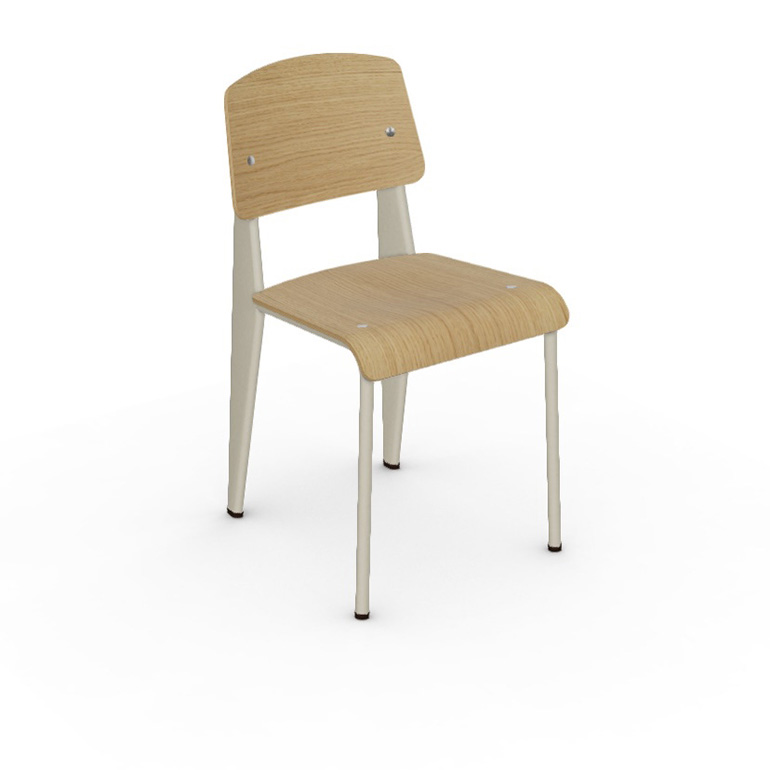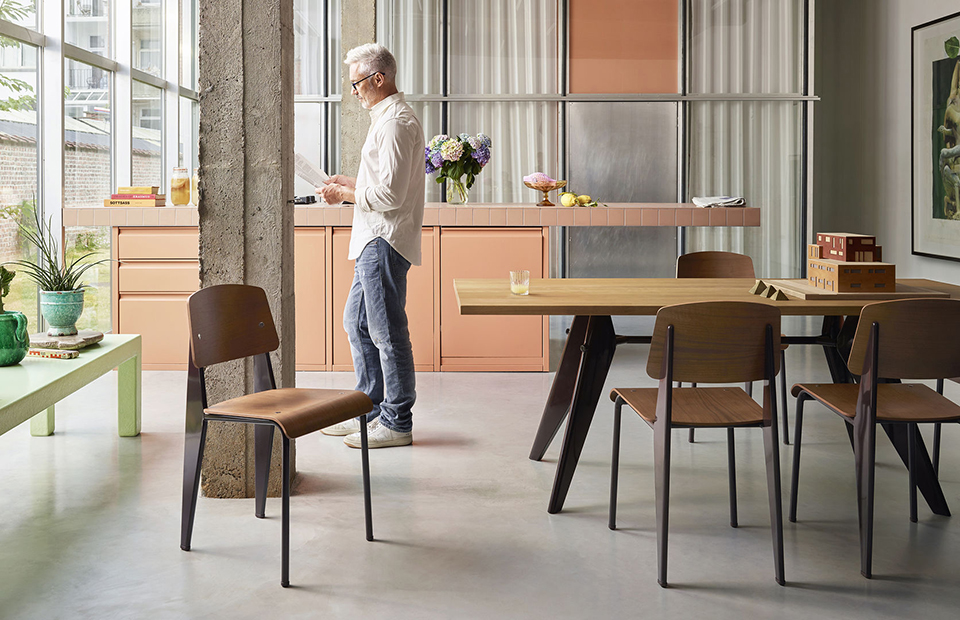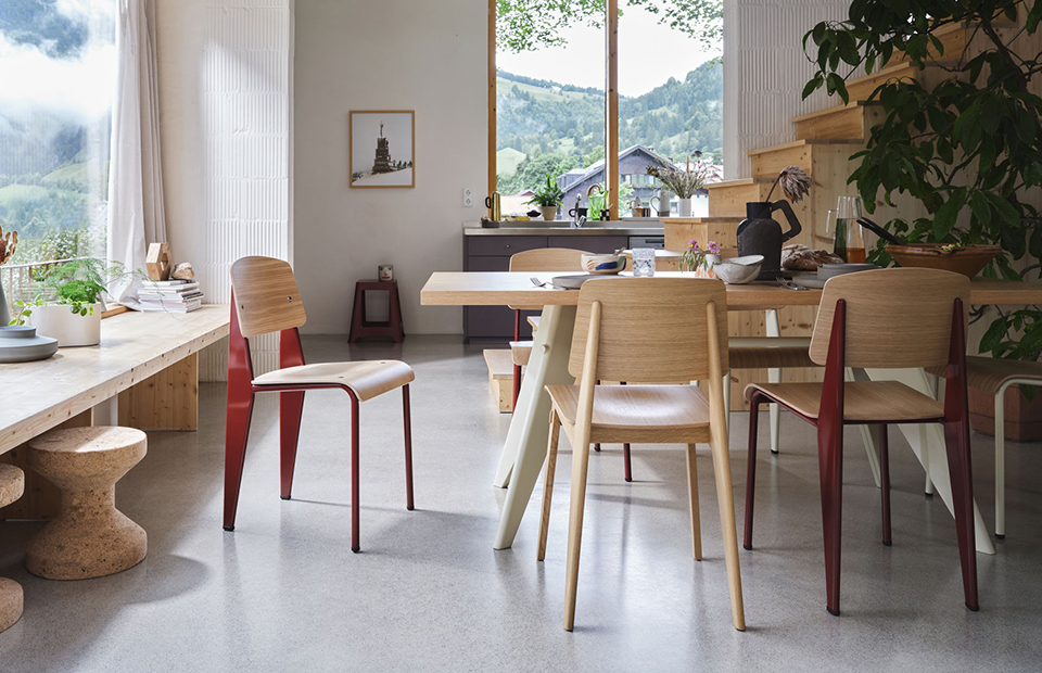 Jean Prouvé 的 Standard 椅子已发展成为法国“建筑师”最著名的经典作品之一。这款低调的标志性椅子的座椅和靠背有各种木材可供选择,金属框架有不同的颜色。