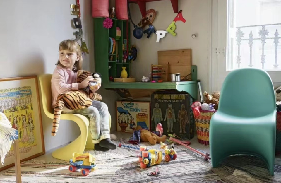 在材料和形状上与原版相同,儿童版比全尺寸的潘通椅小了大约 25 %。这使得 Panton Junior 成为儿童理想的座椅。