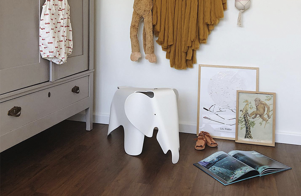 查尔斯·埃姆斯和雷·埃姆斯在1945年最初用胶合板开发出来的大象现在可以用塑料制成——作为各种颜色的玩具或装饰物品,而不仅仅是孩子们的房间。