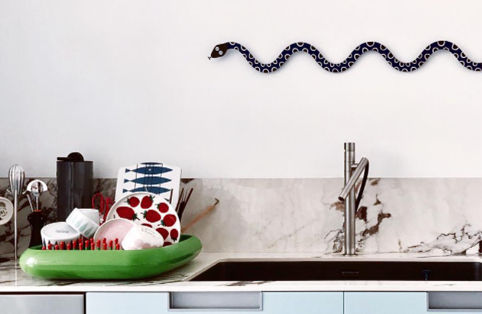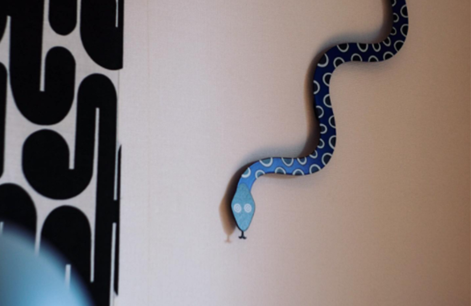 Alexander Girard 为他在德克萨斯州圣安东尼奥市举办的“HemisFair '68”国际博览会上的民间艺术展览设计了魔术蛇图案。蛇作为装饰元素出现在“人民的魔法”展馆的立面上以及随附的展览目录中。Metal Wall Relief Magic Snake 由坚固的金属制成,并具有彩色粉末涂层表面。