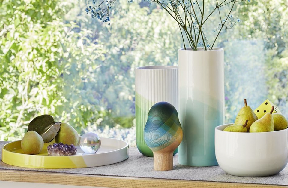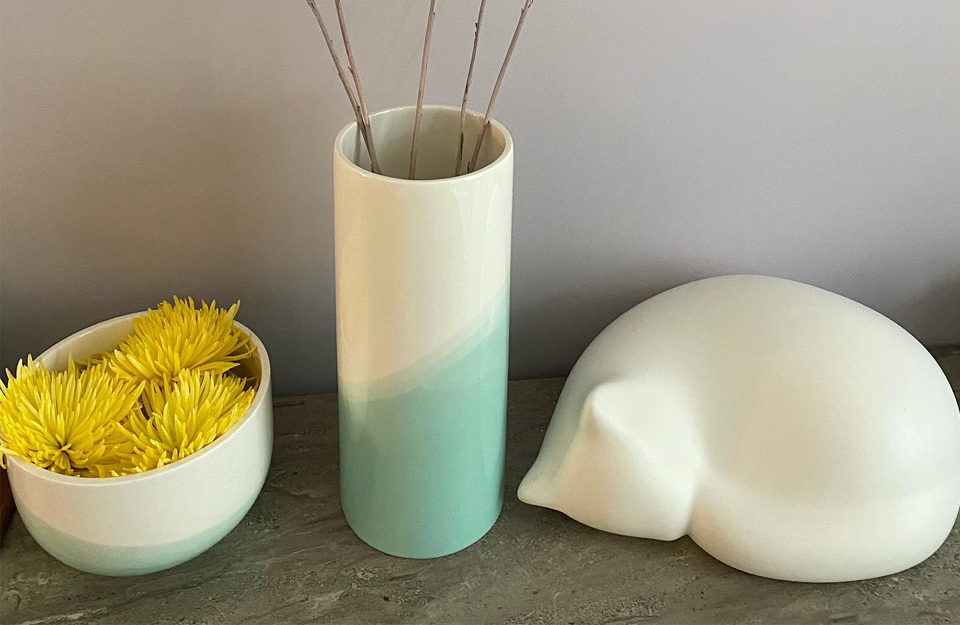 Herringbone Vessels是将陶瓷碗和花瓶反复浸泡在琉璃中制成的。这个过程产生了一个具有内在逻辑的图案,它由倾斜角度以及工件的形状和重量决定。由于染色过程完全由手工完成,人字收藏中的每个碗和花瓶都是独一无二的。