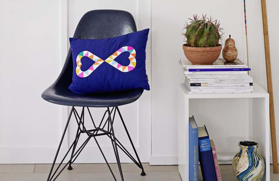 带有“Double Heart 2”图案的刺绣枕头是 Alexander Girard 于 1975 年为米勒家族创作的——米勒之家竣工 20 年后。