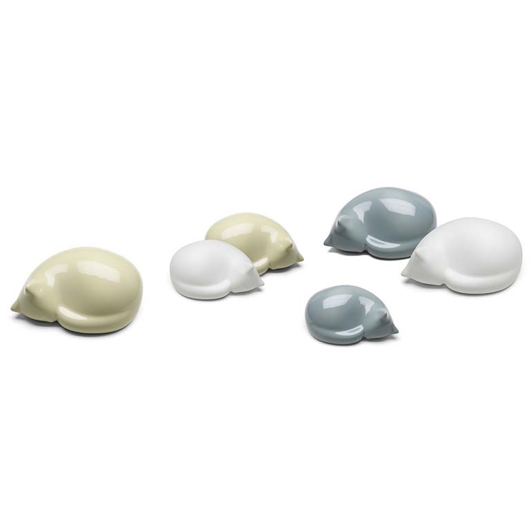 Front 的许多作品都致力于系统地观察睡觉或冬眠的动物。这种迷恋启发了他们设计了一组沉睡的生物——休息的动物——它们的姿势散发着宁静的气息。休息的猫是一个装饰性的陶瓷人物,具有一种平静的存在,它超越了装饰性,传达了一种深刻的满足感。