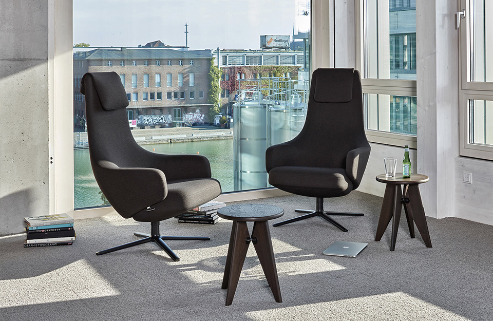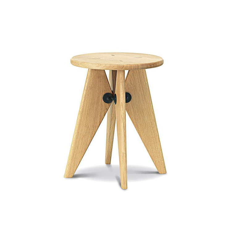 Tabouret Solvay带有Jean Prouvé的标志,反映了一种基于结构要求的审美。坚固的凳子可在天然橡木,黑橡木或美国胡桃木。