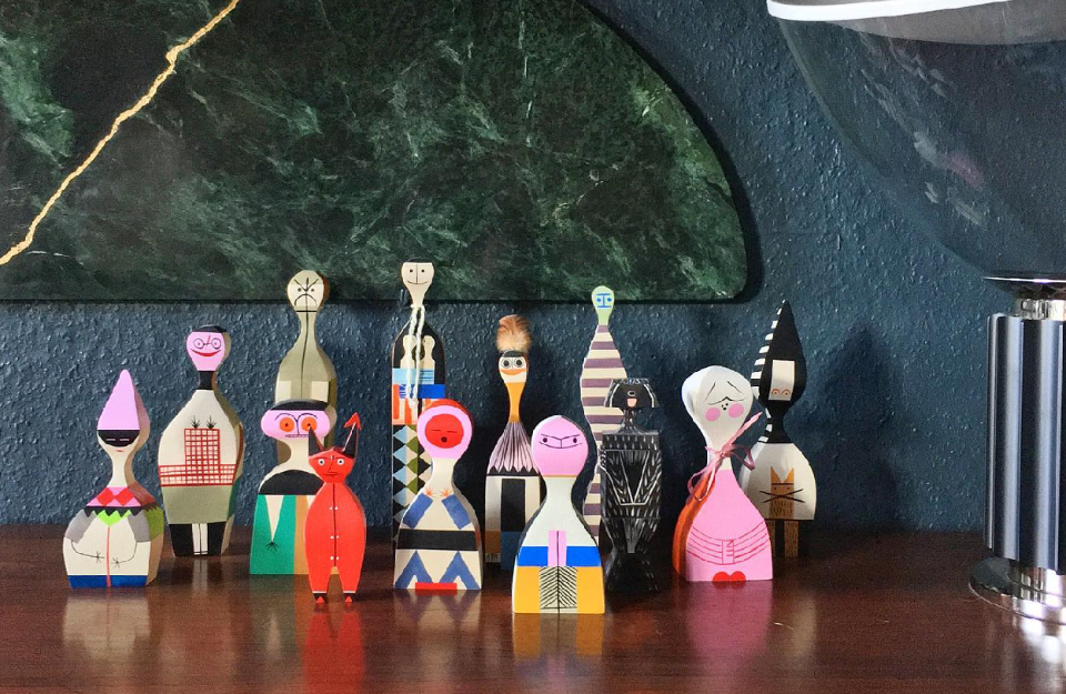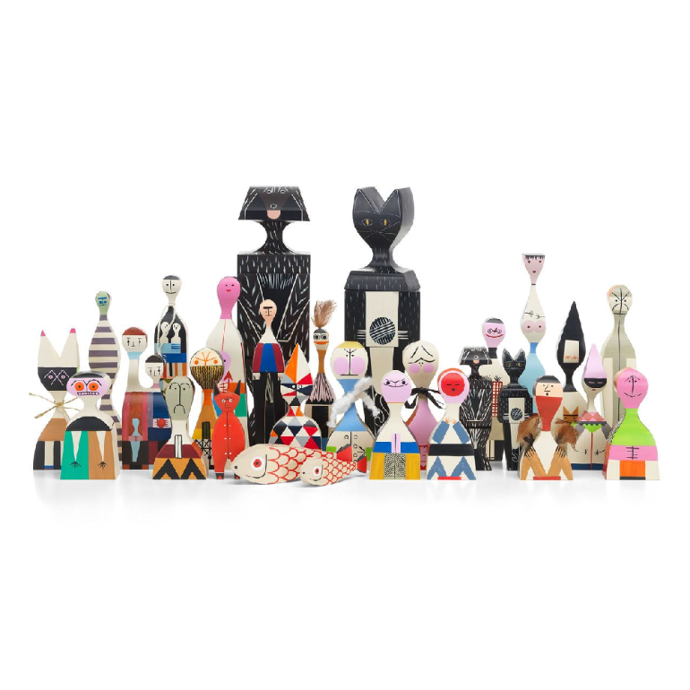 亚历山大·吉拉德(Alexander Girard)的木偶是代表人类和动物角色的木偶大家族。吉拉德在1952年设计了它们,作为他在圣达菲家中的装饰物。这些原件是维特拉设计博物馆(Vitra Design Museum)馆藏的吉拉德庄园(Girard estate)的一部分,是当前再版的模型。从精确复制到最后一个细节,许多不同的木制玩偶今天仍然是手工制作和绘制的,就像亚历山大·吉拉德(Alexander Girard)的复古作品一样。即使它们之间的差异非常微小:每个木雕都是独一无二的、独立的产品,真正独一无二。