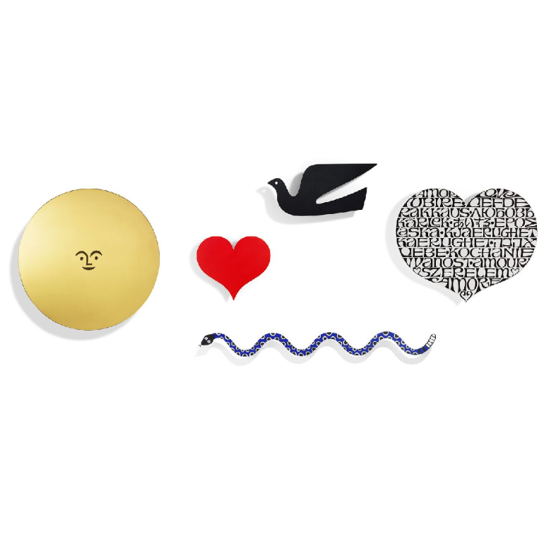 亚历山大·吉拉德(Alexander Girard)对室内的每一个可见表面都给予了同样的关注。天花板、墙壁和地板的设计非常谨慎,并与房间中的可移动物体相协调。金属墙面浮雕是吉拉德为各种室内设计项目(如复合餐厅、展览和他在圣达菲的房子)创作的墙面装饰的装饰性例子。维特拉与吉拉德家族合作,为浮雕选择了几个原始图案,这些浮雕由坚固的金属材料制成。