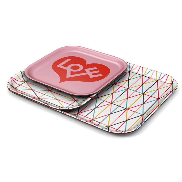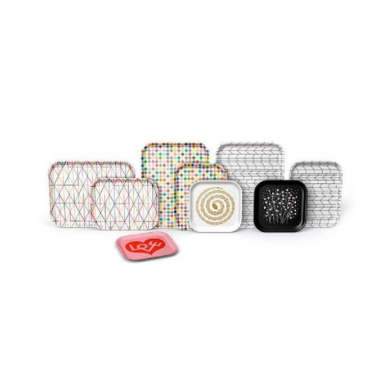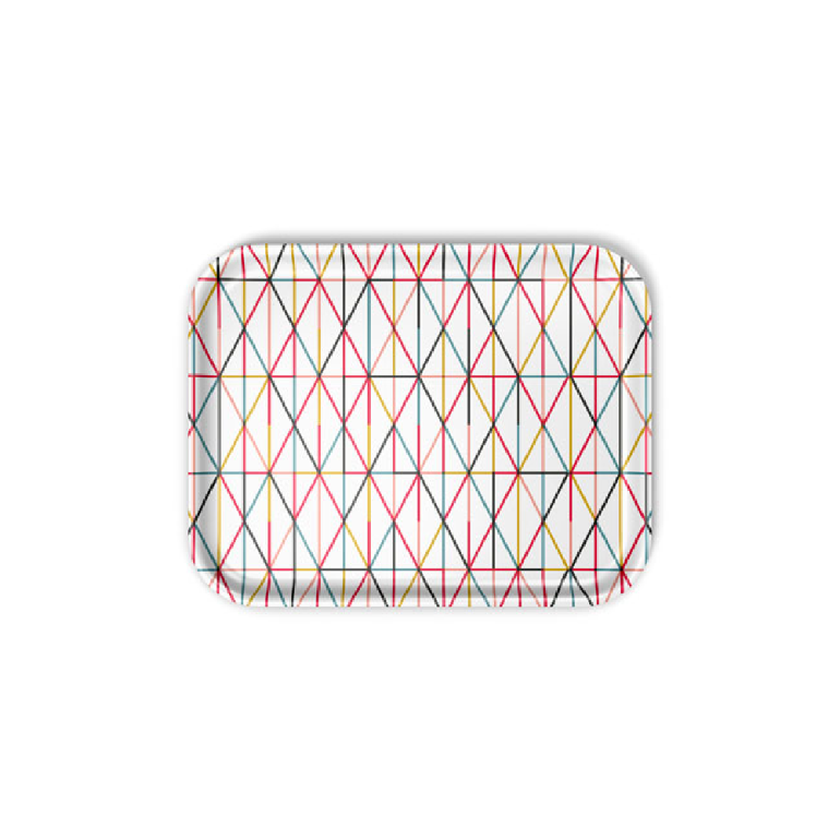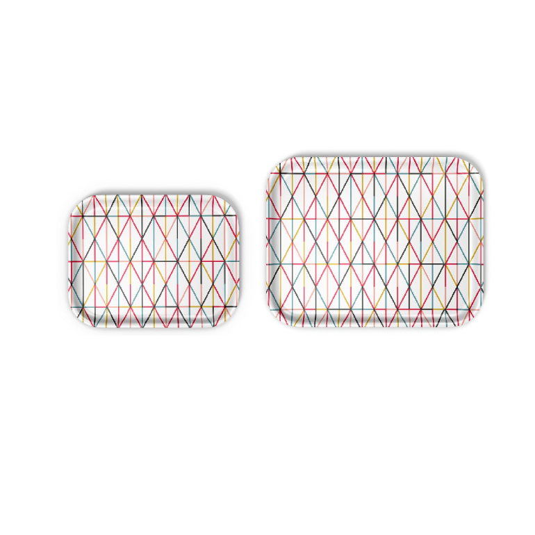 经典托盘由层压胶合板制成,有亚历山大·吉拉德为各种目的创作的各种图案,由维特拉与吉拉德家族合作挑选。圆点图案由查尔斯和雷·埃姆斯于1947年设计,后来用于枕头、靠垫、毯子和其他物品。