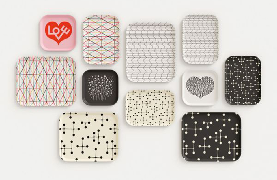 亚历山大·吉拉德(Alexander Girard)和查尔斯·雷·埃姆斯(Charles & Ray Eames)设计的经典托盘(1947- 1974)有三种尺寸。由叠层胶合板制成,它们的特色图案来自这些传奇设计师创造的丰富的图像存储。