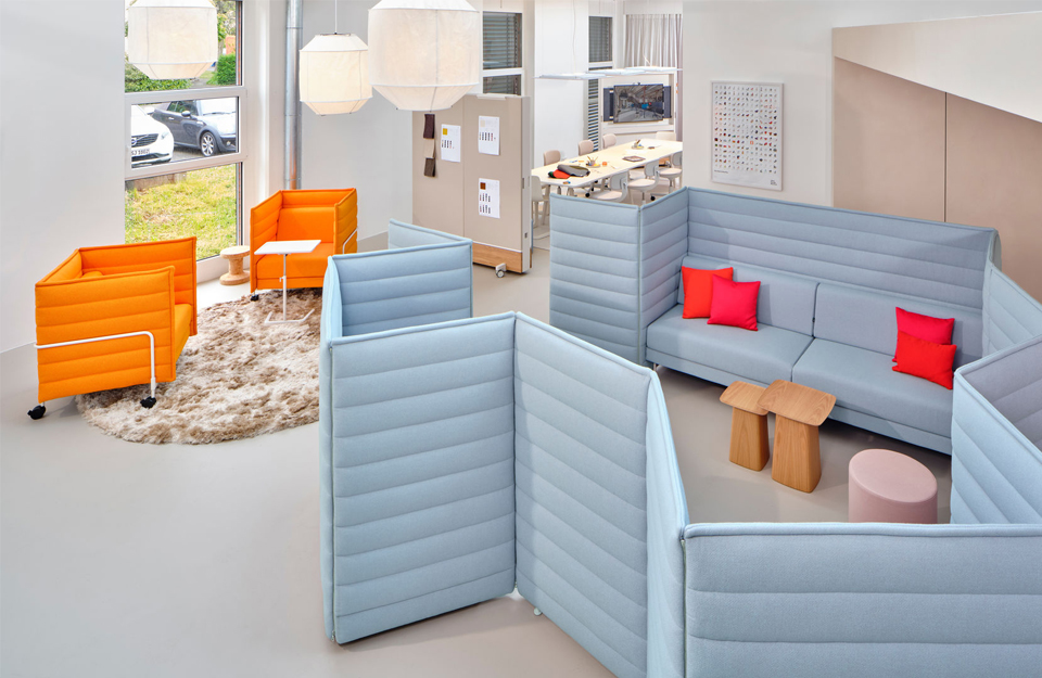 Alcove 产品线背后的基本概念——创造庇护所和隐居之地——在 Alcove 高背沙发中尤为明显。在 Alcove Highback Sofa 的高侧面板和背面板内,就座者在视觉和听觉上都与周围环境隔绝。当两张沙发彼此相对放置以形成“房间中的房间”时,这种效果更加明显。