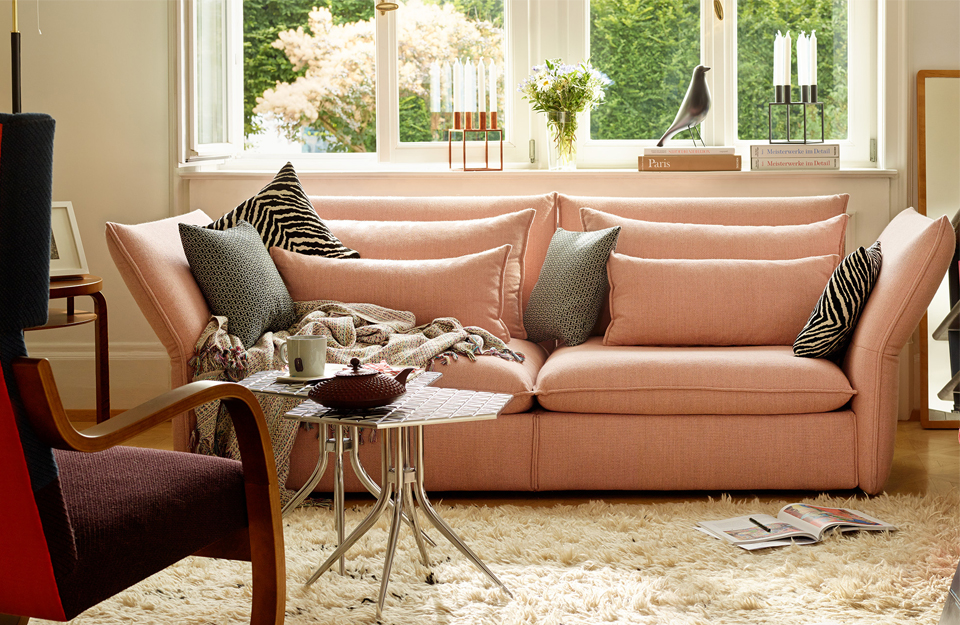 舒适的软垫、侧面和背板,可以调整到大约30°的外角,给了Edward Barber和Jay Osgerby设计的Mariposa沙发(2014)带来了非凡的舒适感。
