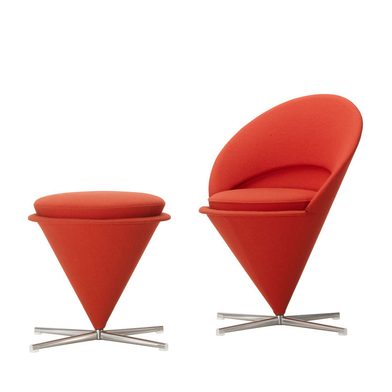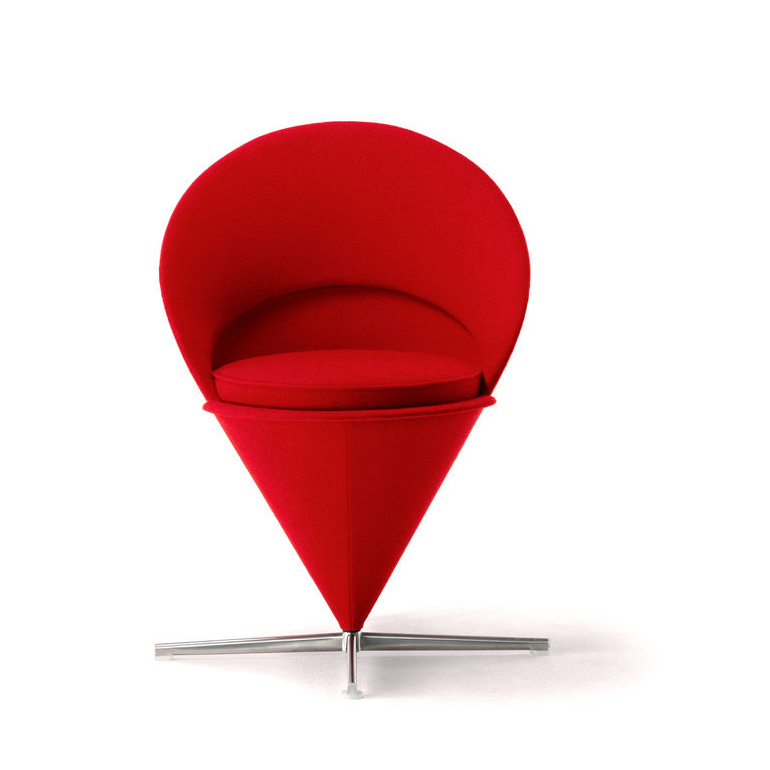 Verner Panton 最初为丹麦的一家餐厅设计了锥形椅。它的形状取自它命名的经典几何图形。带衬垫的外壳形成靠背和扶手,与柔软的座垫一起创造出非常舒适的扶手椅,它安装在优雅的不锈钢旋转底座上。