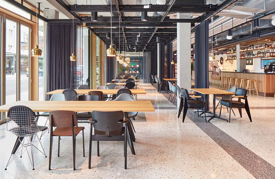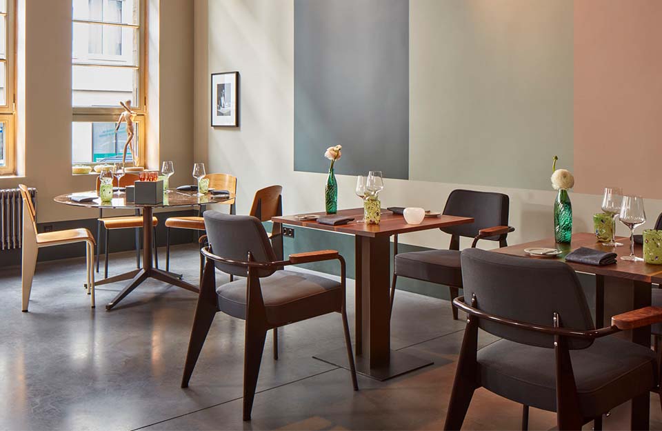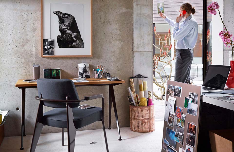 Fauteuil Direction 特别适用于餐厅座椅或家庭办公室的扶手椅。该设计反映了让·普鲁维基于结构要求的独特审美词汇。舒适的软垫扶手椅有多种不同颜色的织物或皮革套可供选择。
