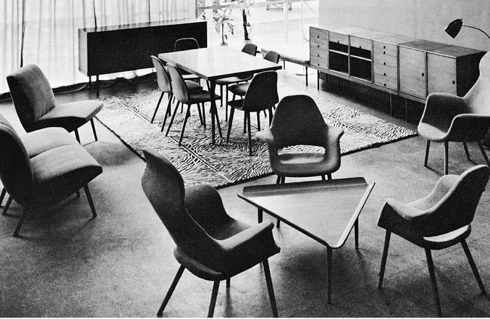 由 Charles Eames 和 Eero Saarinen 在 1940 年设计的,作为他们在“家居中的有机设计”的参赛作品的一部分,这个比赛是由纽约现代艺术博物馆组织的,有机海贝克被认为是一个经典。舒适的软垫紧凑型扶手椅与其引人注目的形状高座椅外壳也可与一个中等靠背-有机椅子-或在有机会议版本的餐桌。