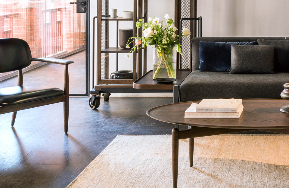 Slow系列的灵感源自设计师Space Copenhagen为哥本哈根108餐厅所设计的餐椅,意图塑造优雅的软包木质家具,以探索线条和轮廓的精致之美。该系列产品的桌腿和椅腿的线条柔和纤长,整体造型沉稳自然,完美融合了中世纪丹麦风格和日本设计风格,在致敬经典和手工艺的同时,却也丝毫不失现代感与舒适度。因此,Slow系列完美演绎出优质手工艺和选材的品牌核心价值。所有家具产品精选上乘的胡桃木和白蜡木制作框架,再搭配厚实的皮革制作而成的座垫,大大提升舒适度。造型既简洁大气,又凸显别具匠心的外形和细节。