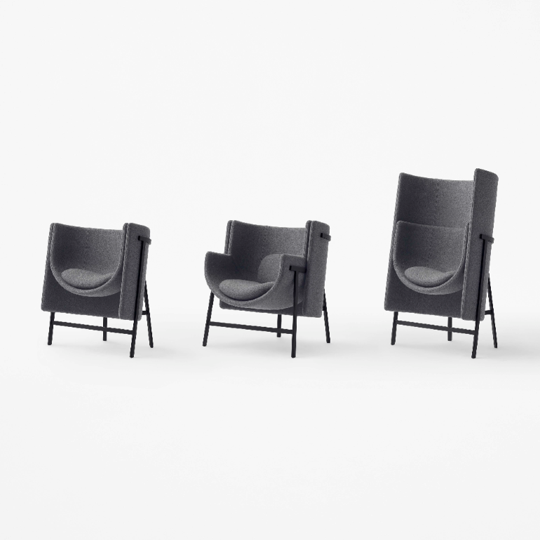 Kite是一款专为商业用途及酒店空间设计的紧凑型扶手椅,尤其适用于小型空间。用于大厅和休息室的扶手椅和沙发有很多,但对于像走廊、电梯大厅及出入口等狭窄空间的家具设计却是供不应求。要让椅子的体积缩小,通常的方法就是将靠背的大小不断缩减从而打造出像凳子一样的家具。然而,座椅靠背却是这把椅子的亮点。它与座位完美地连接在一起,让使用者感觉更像是倚在一个舒适的靠背中。像Kite这样的设计在尽可能少占用空间的同时,也为使用者带去了舒适感和安全感。且其靠背和座椅作为两个独立的组件,使用时可根据空间的大小和客户对隐私的需求,来调节座椅的深浅和靠背的高低。