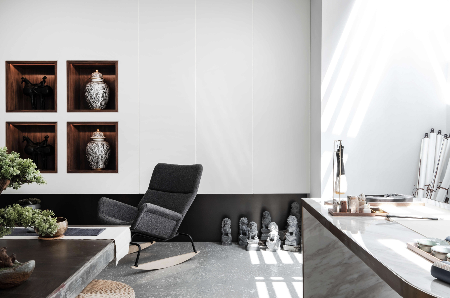 在这处私宅中,橡木与局部金属搭配,营造出一种淡然美感。软装家具也尽量以高品质为核心,以Living Divani、Carl Hansen&son、Herman Miller、Stellar Works等设计家具品牌为主,干净自然的同时传达了材料本身的细微温度,脚底与实木质感的木地板的亲密接触,自然平和,让整体空间更加温暖细腻。从多个空间为居住者营造无负荷的居住感。