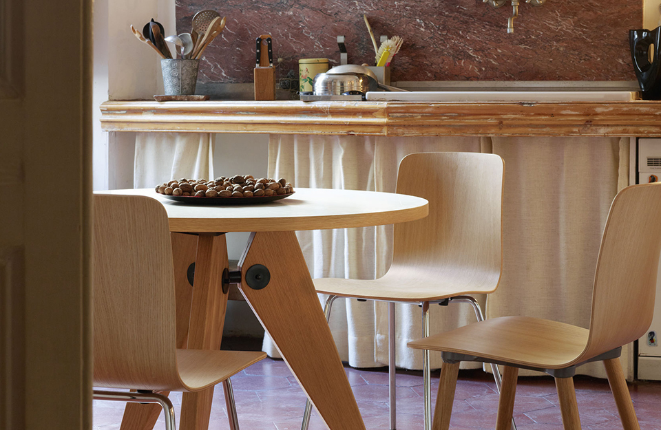 法国设计师兼工程师Jean Prouvé于1949年为巴黎大学设计了木制的Guéridon圆桌。它有两种不同的尺寸和各种类型的优质木材。