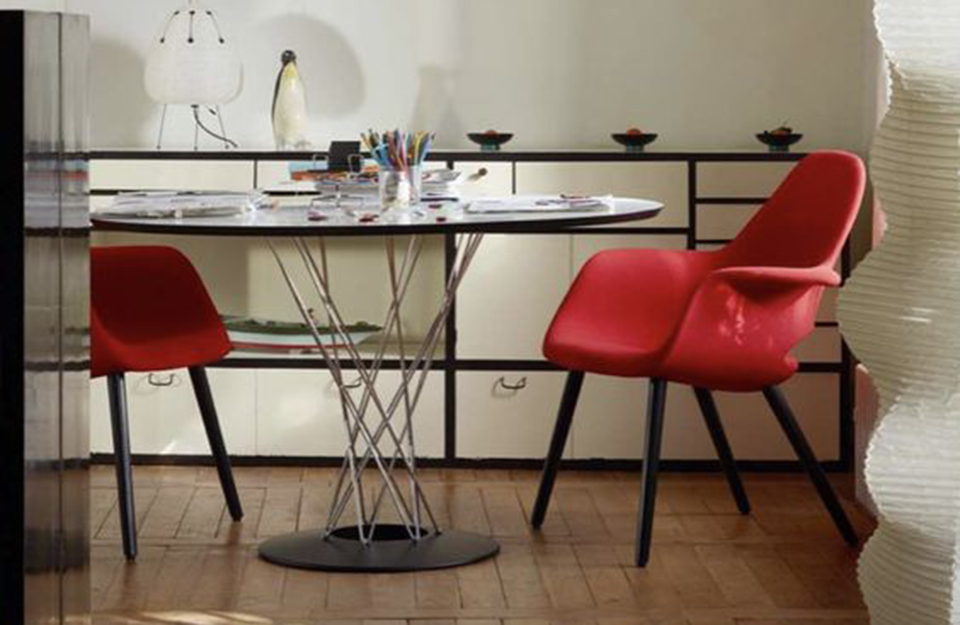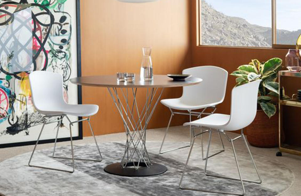 由Isamu Noguchi设计的餐桌是二十世纪家具设计史上最优雅的餐桌之一。镀铬的金属杆连接到铸铁底座环上,为雕刻家设计的桌子增加了稳定性和支撑力,但看起来并不沉重。餐桌有两种尺寸的桌面可供选择。