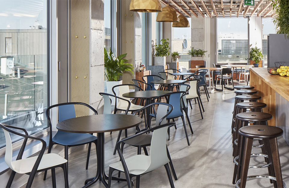 Ronan和Erwan Bouroullec(2015)设计的Belleville table由于桌面选择的多样化,在外观上具有高度的多样性。与Belleville椅子一起,它们构成了一个和谐的家具家庭。