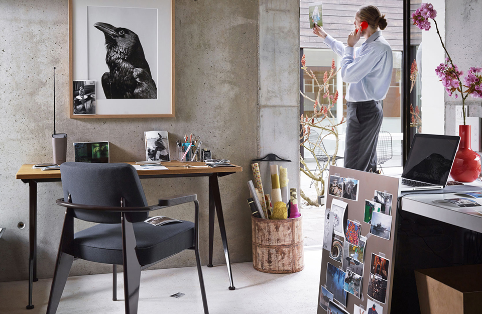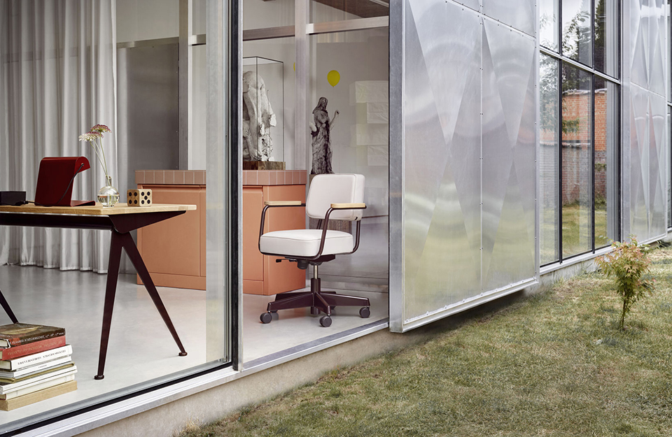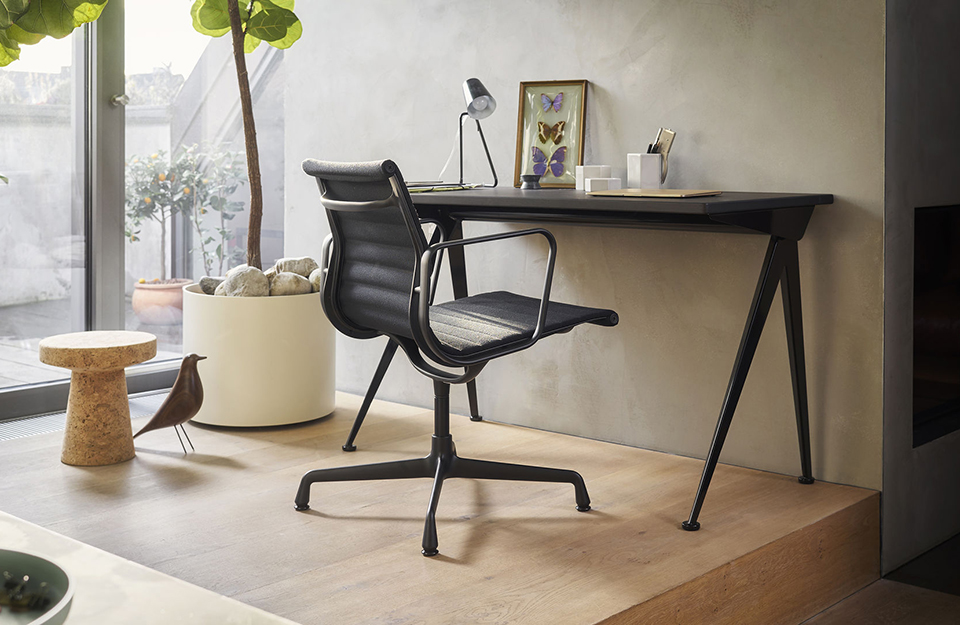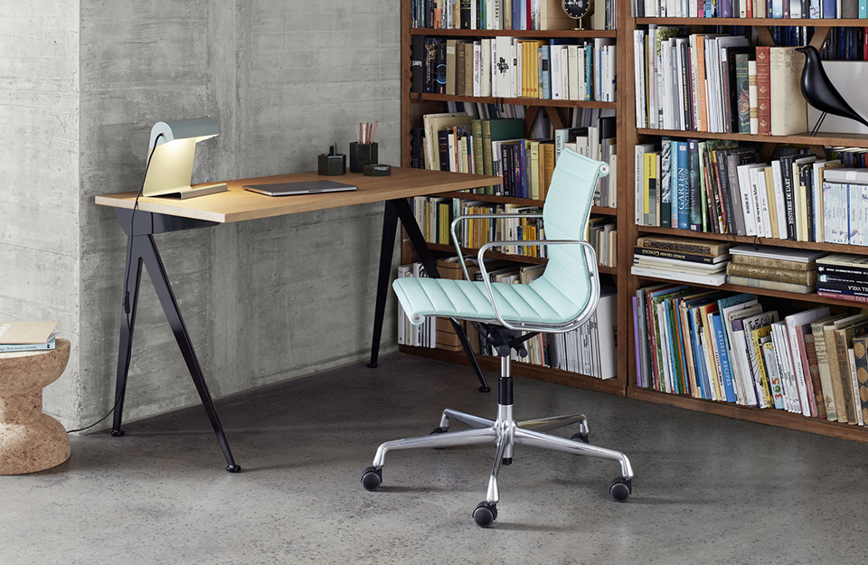“罗盘方向”(Compas Direction)设计于1953年,设计师Jean Prouvé设计了它修长、优雅的张开腿,这让人想起指南针的铰链臂——法语中的“le Compas”。 由于其紧凑的尺寸,书桌是现代家庭办公室的理想选择。