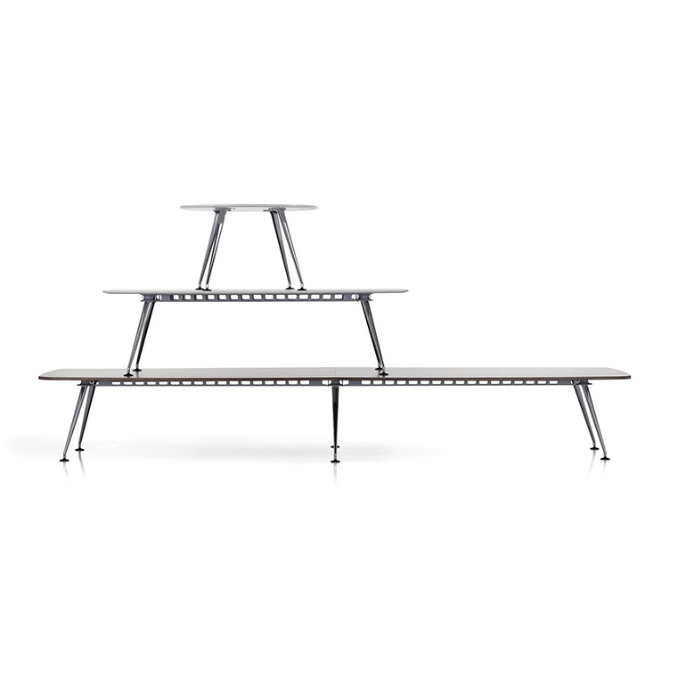 由于其巧妙的模块化基础结构,MedaMorph表系统可以配置在几乎任何形状和大小。该作品集还包括几个现成的访客、会议和各种尺寸的会议桌。